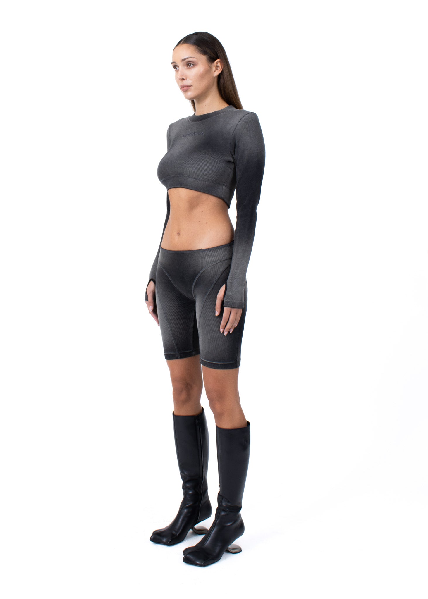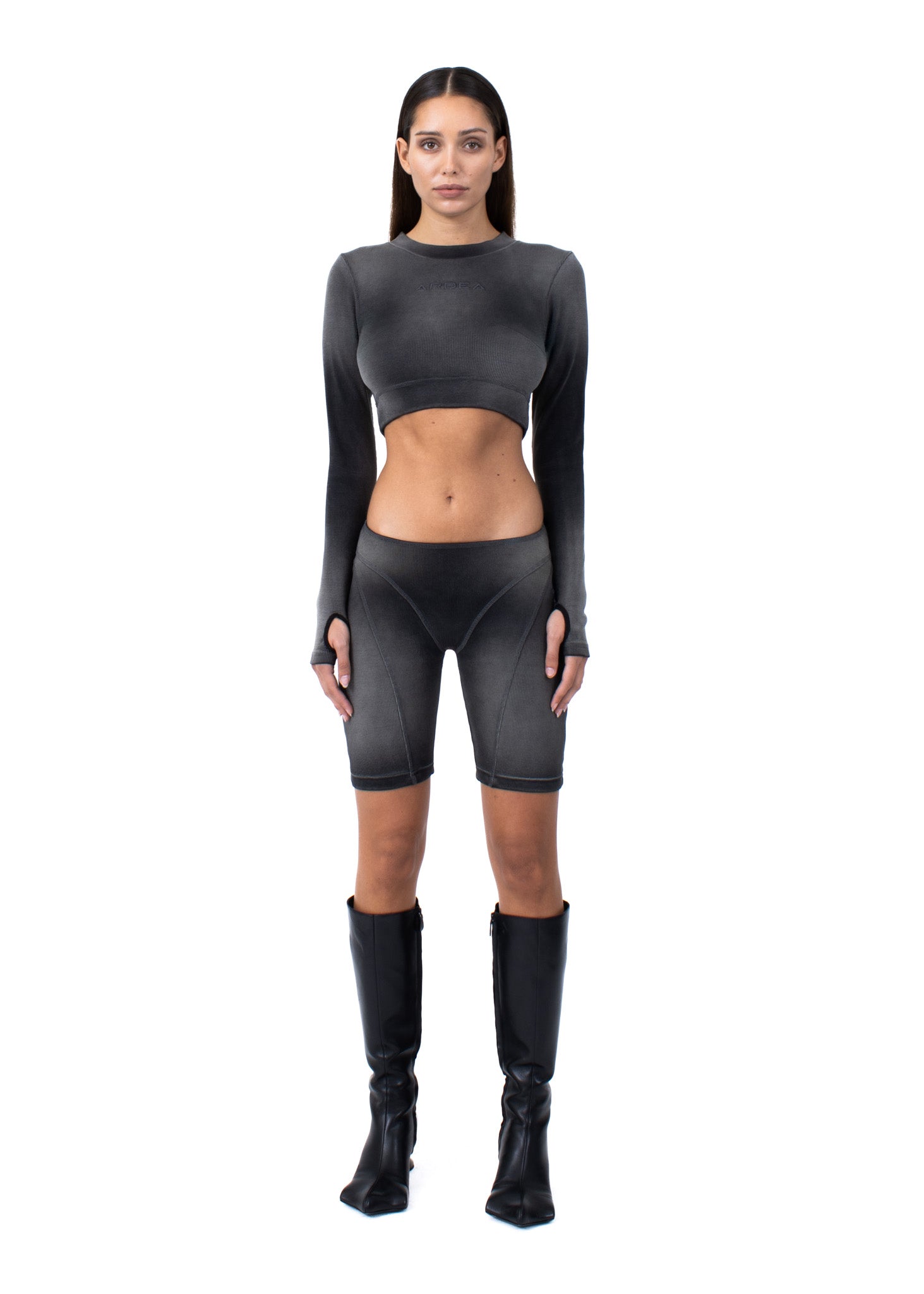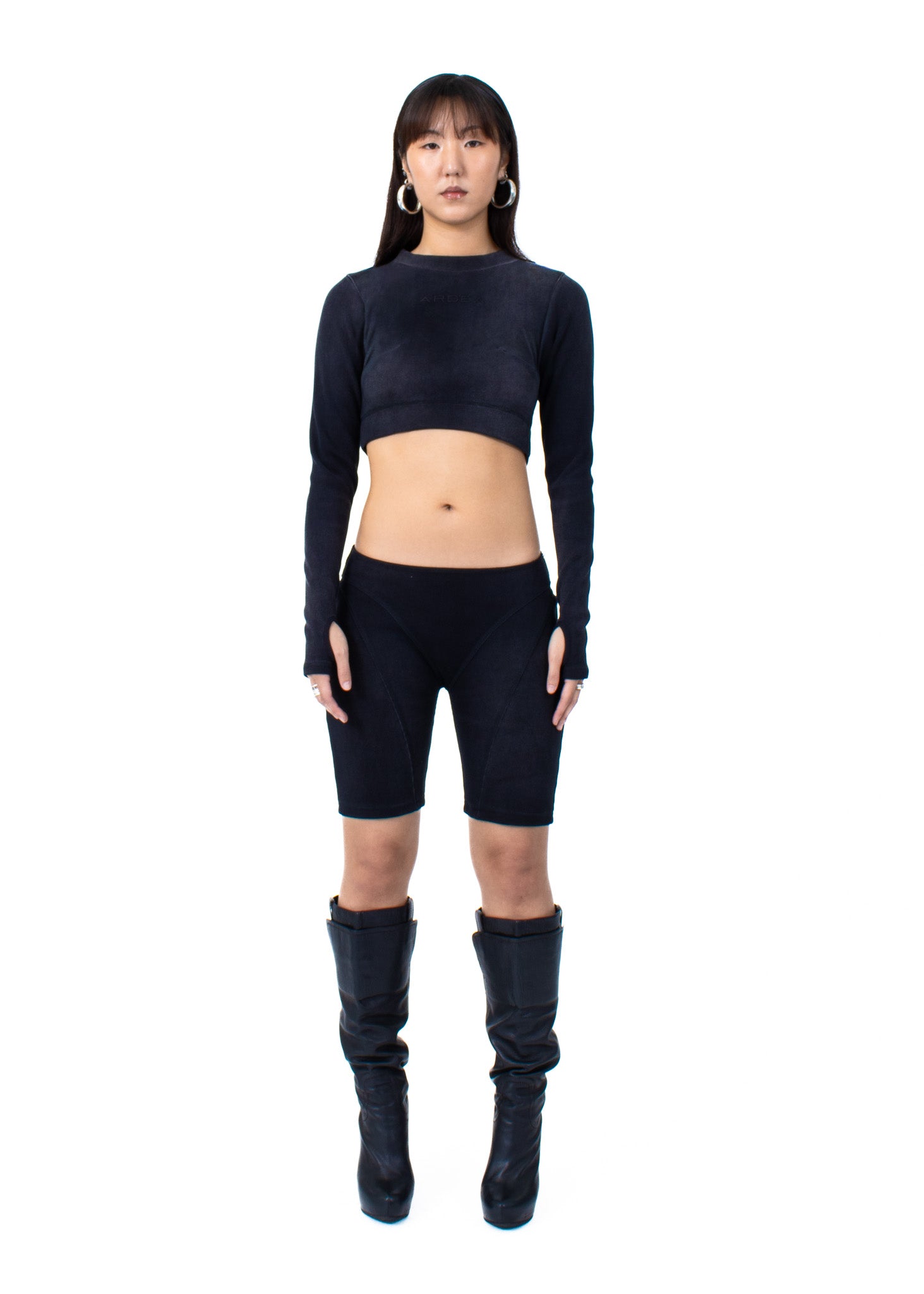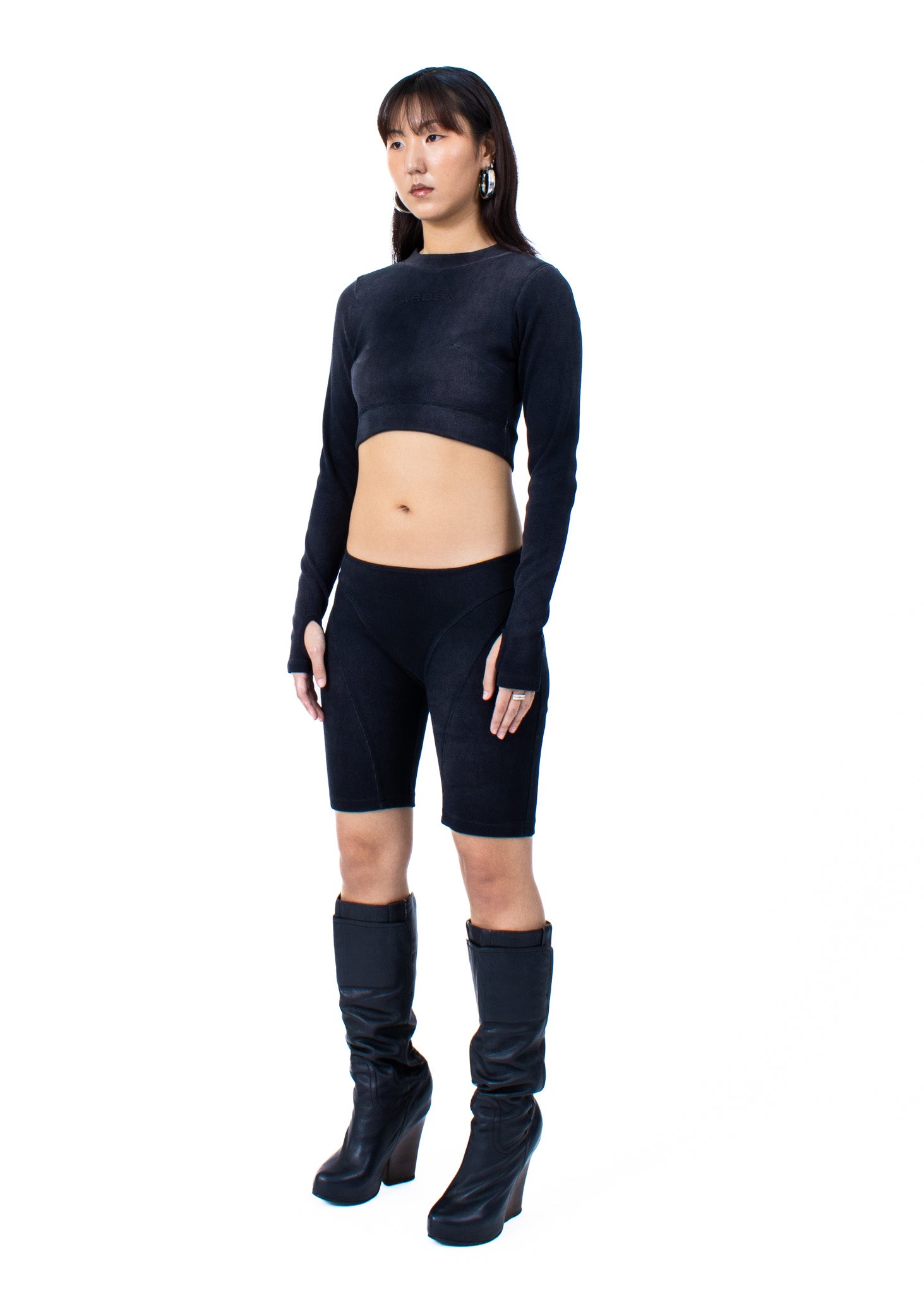 BLACK LONG SLEEVE STEALTH CROP TOP