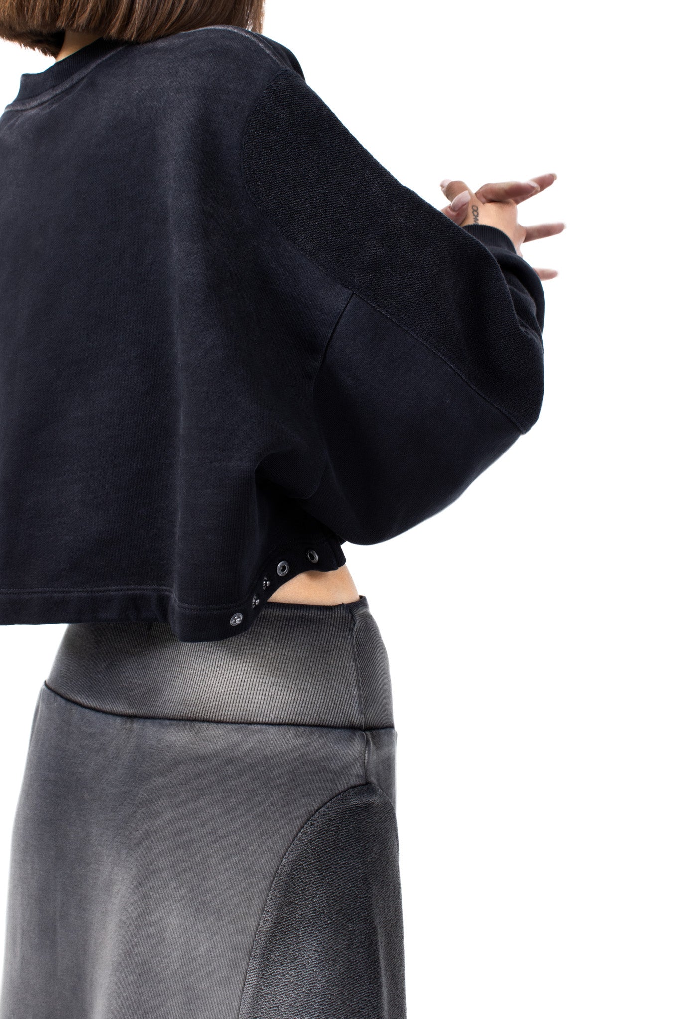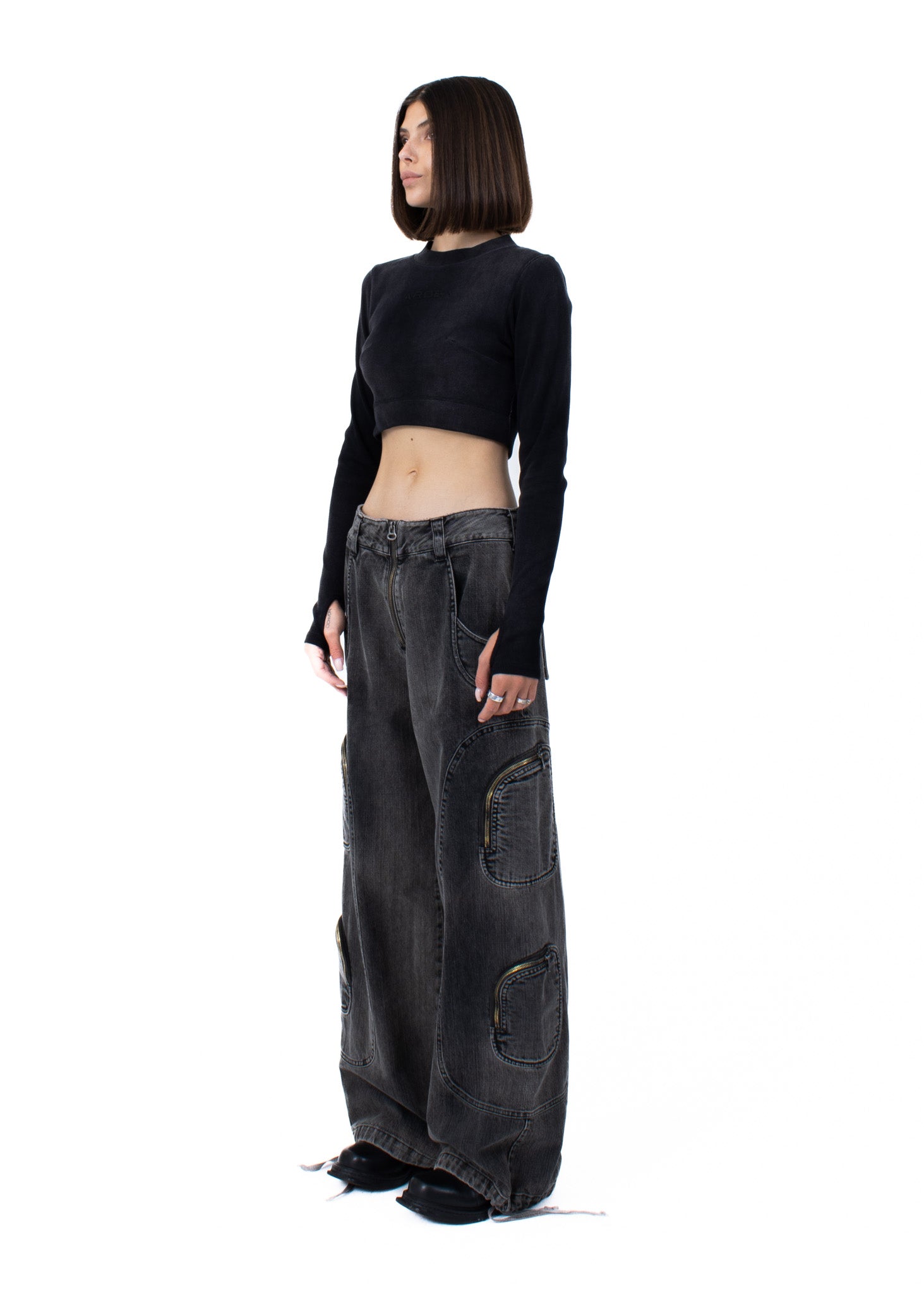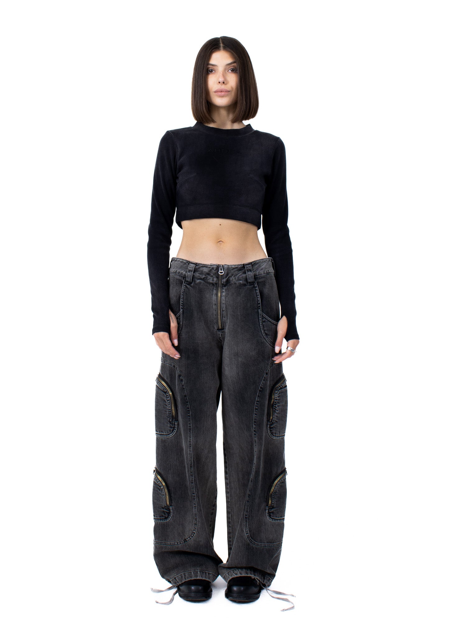 BLACK LONG SLEEVE STEALTH CROP TOP