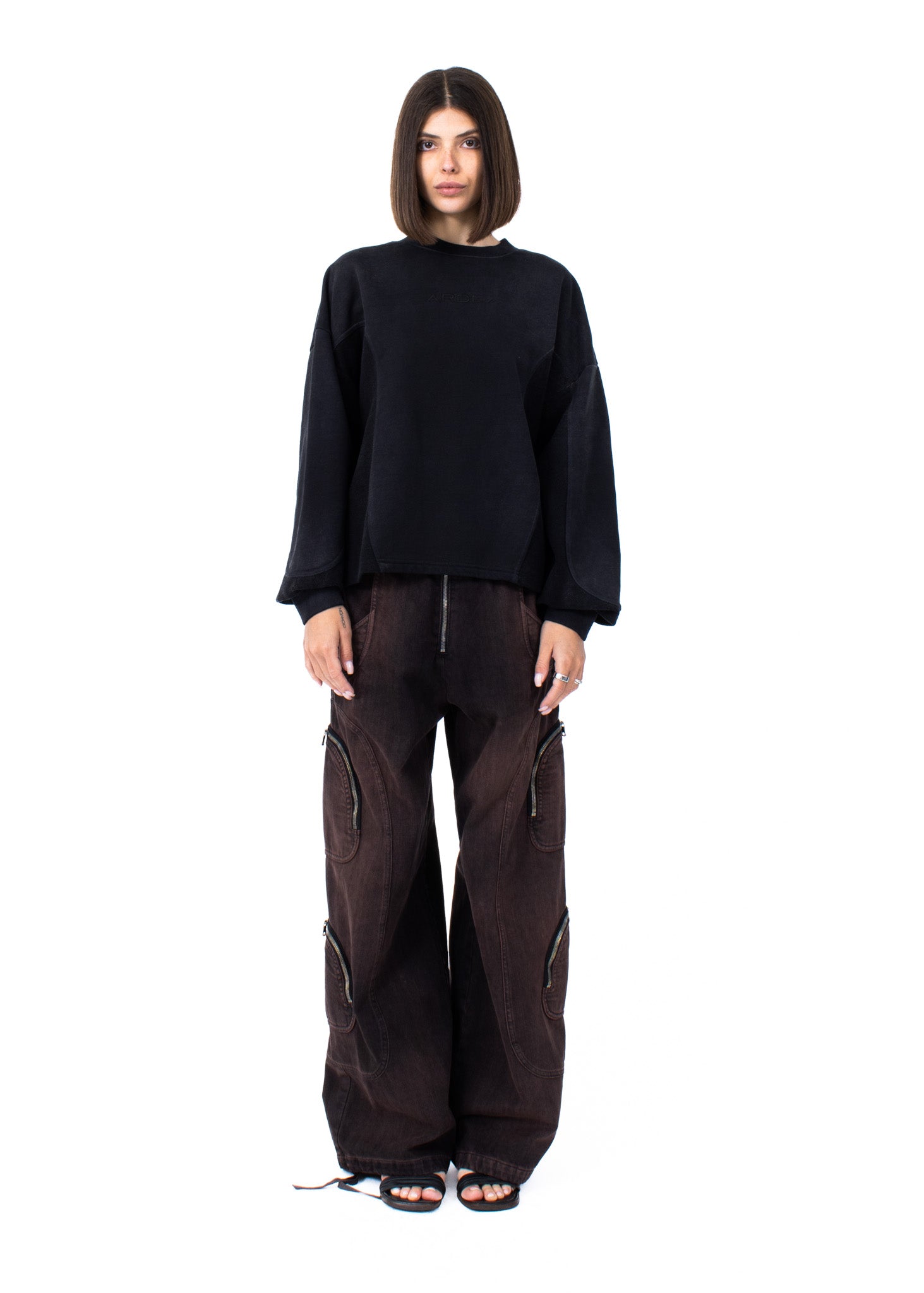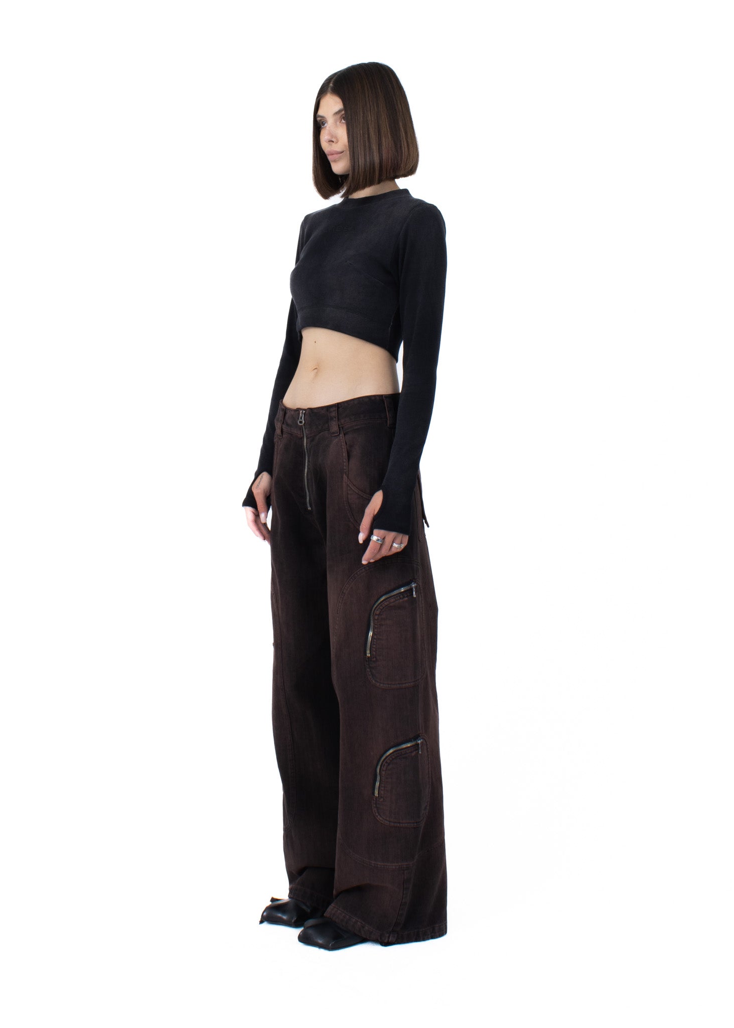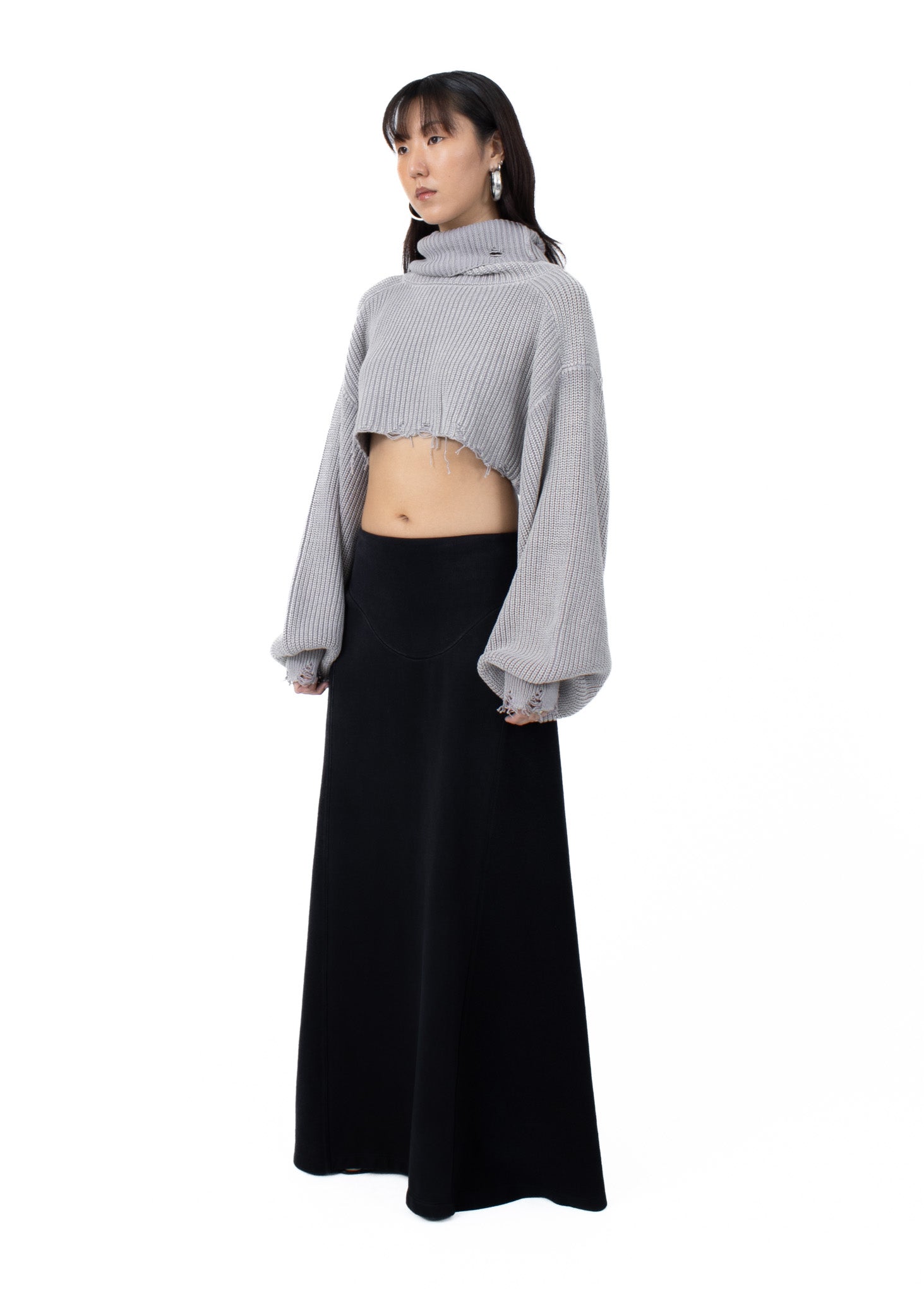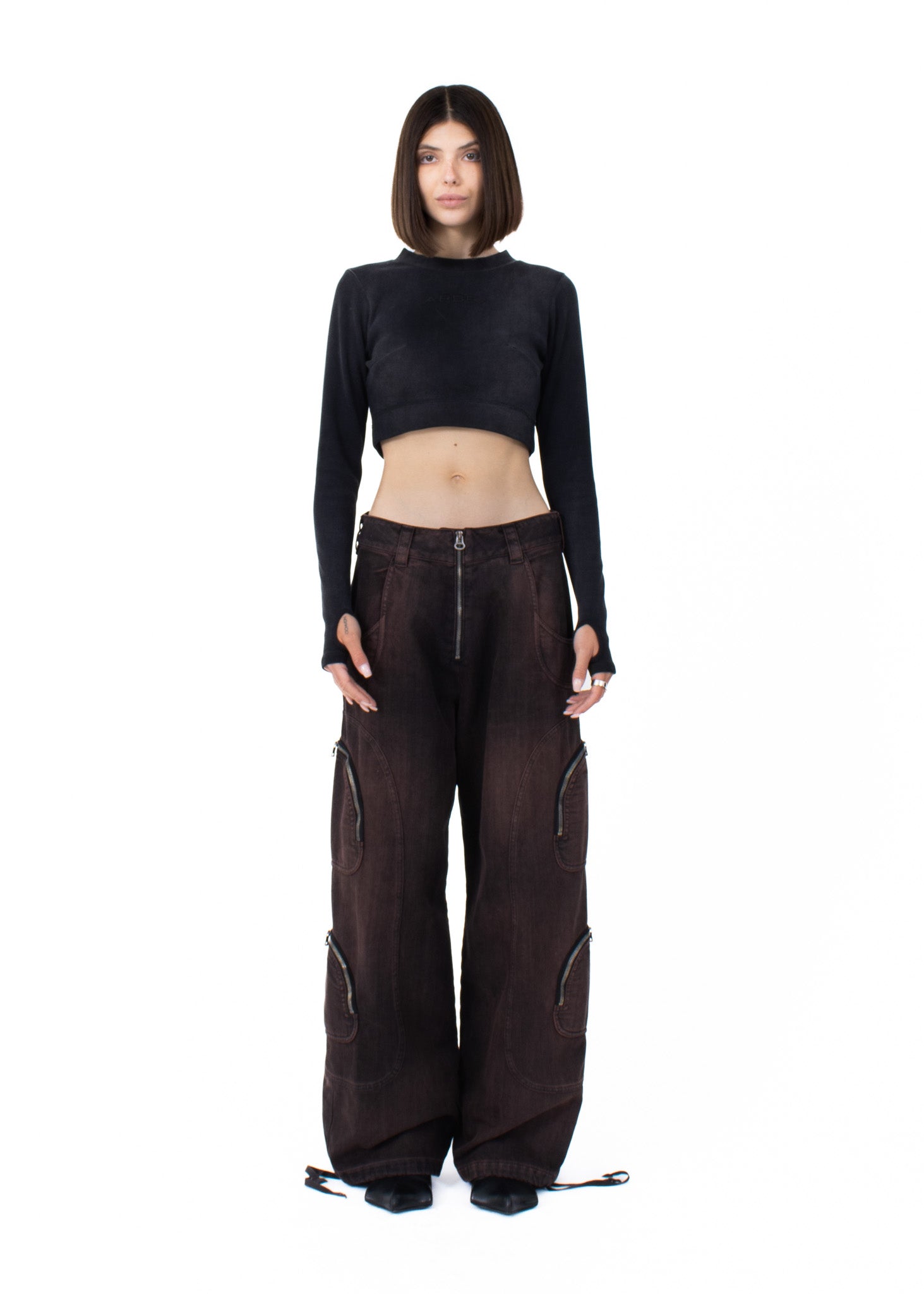 BLACK LONG SLEEVE STEALTH CROP TOP
