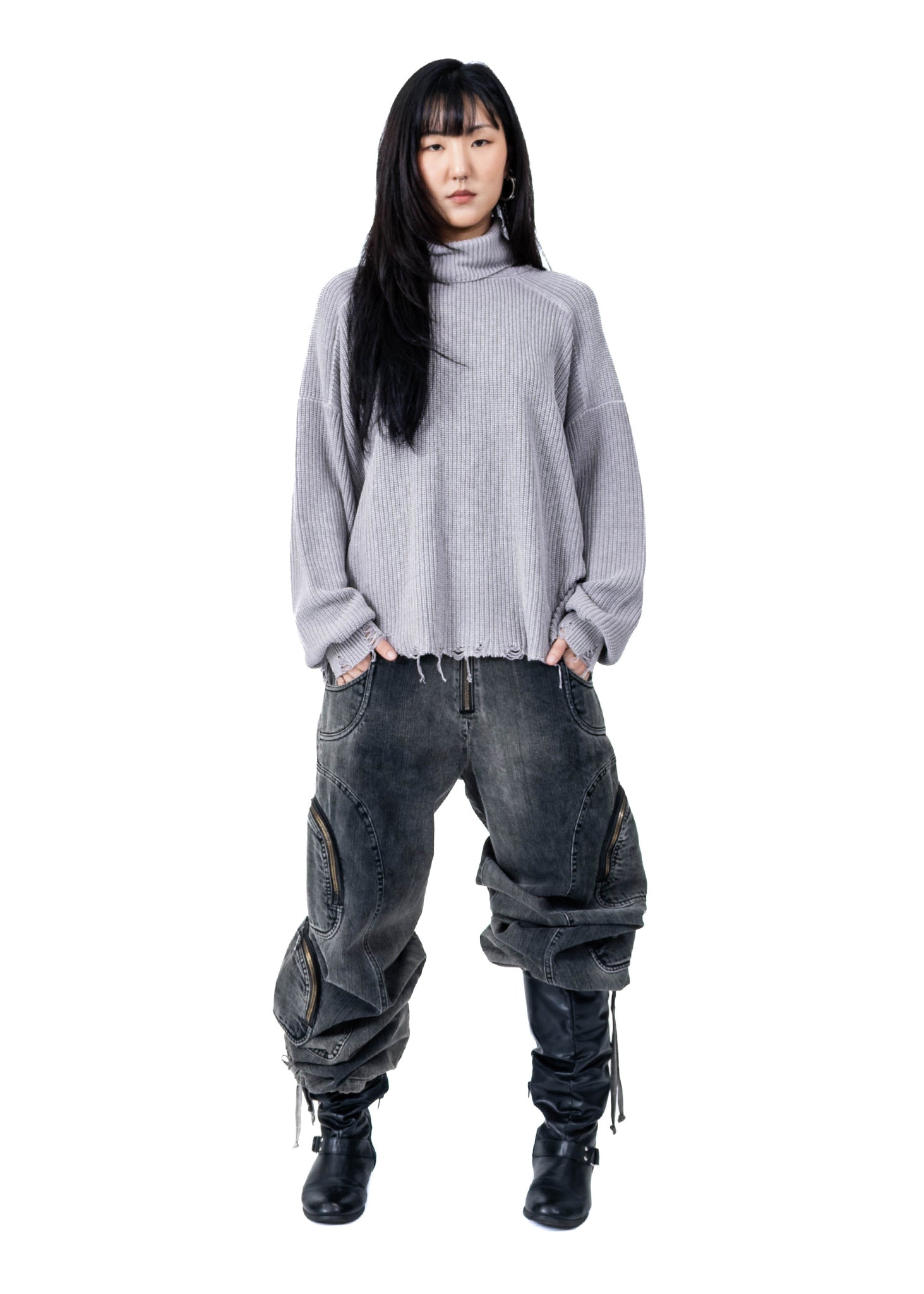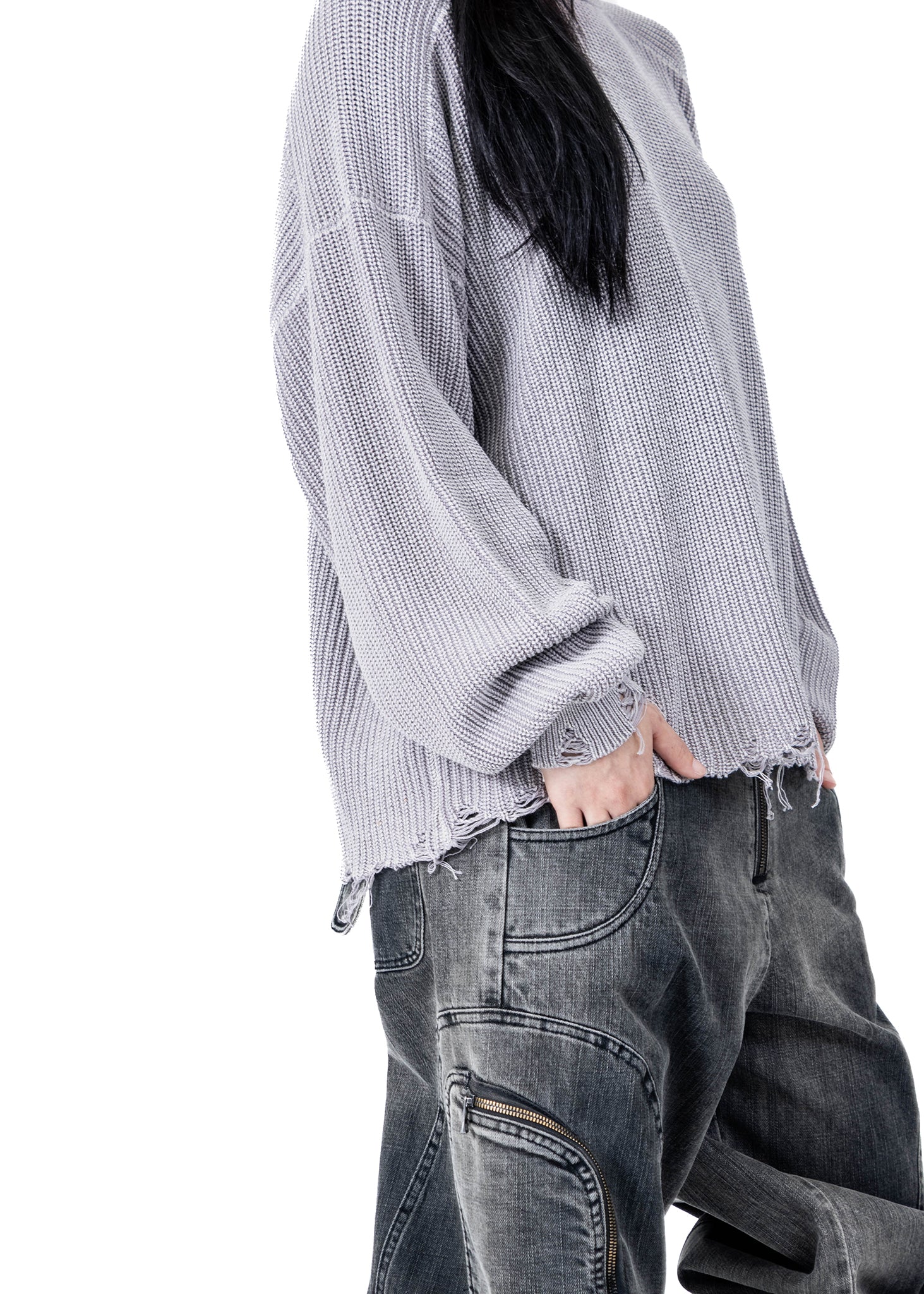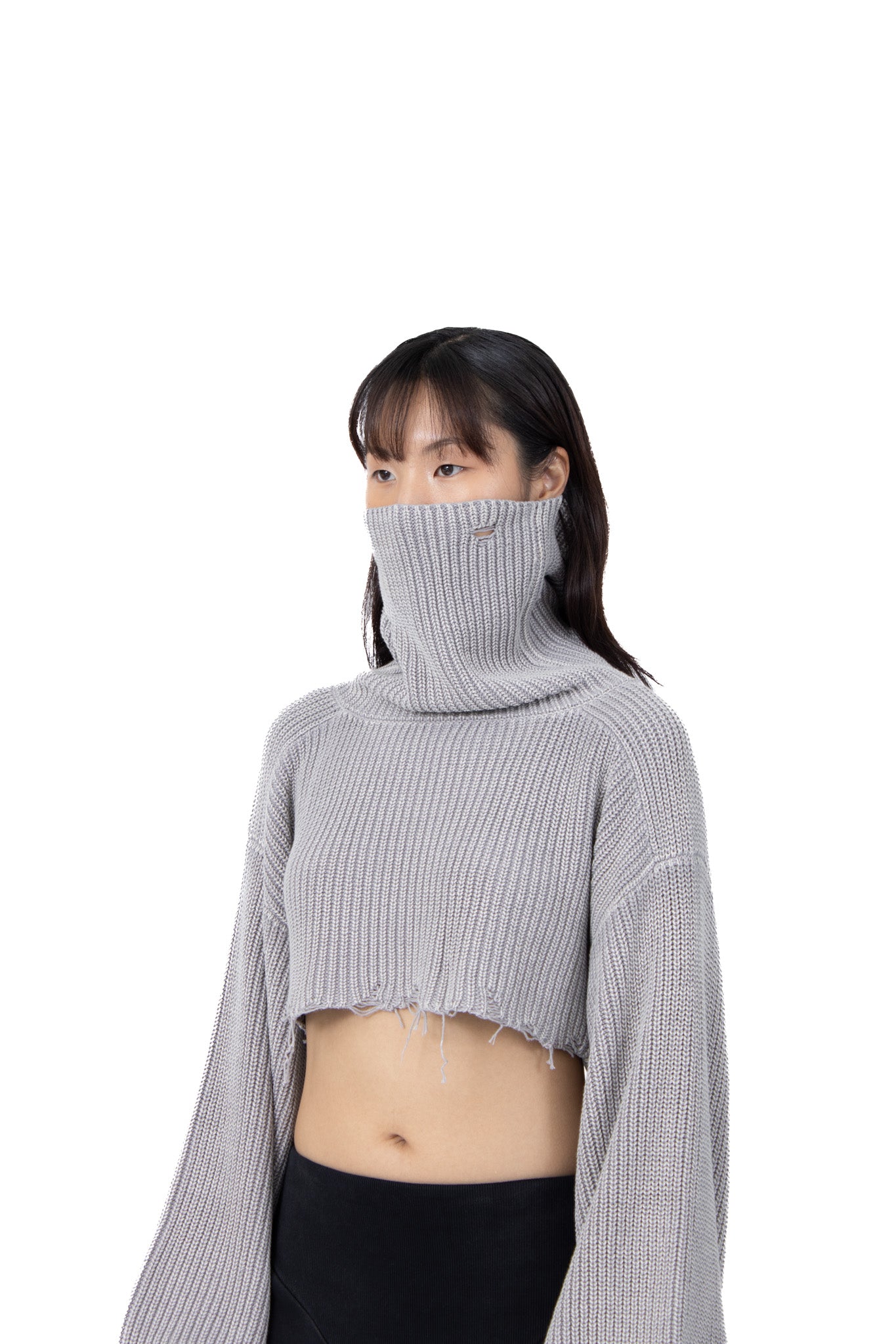 CROPPED GREY MASK KNIT SWEATER