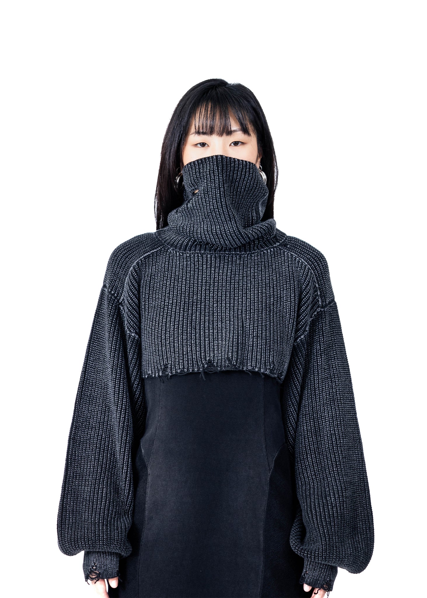 CROPPED BLACK MASK KNIT SWEATER